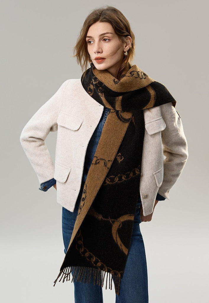 Define your cold-weather style with this impeccably woven wool scarf. Designed for the modern individual, its refined texture and balanced weight provide ideal warmth for commutes, cafe stops, and evening strolls. The adaptable design lends itself to multiple wears—elegant under a blazer, casual over a jacket, or simply wrapped close for moments of quiet comfort. An understated yet sophisticated piece that bridges function and fashion seamlessly.