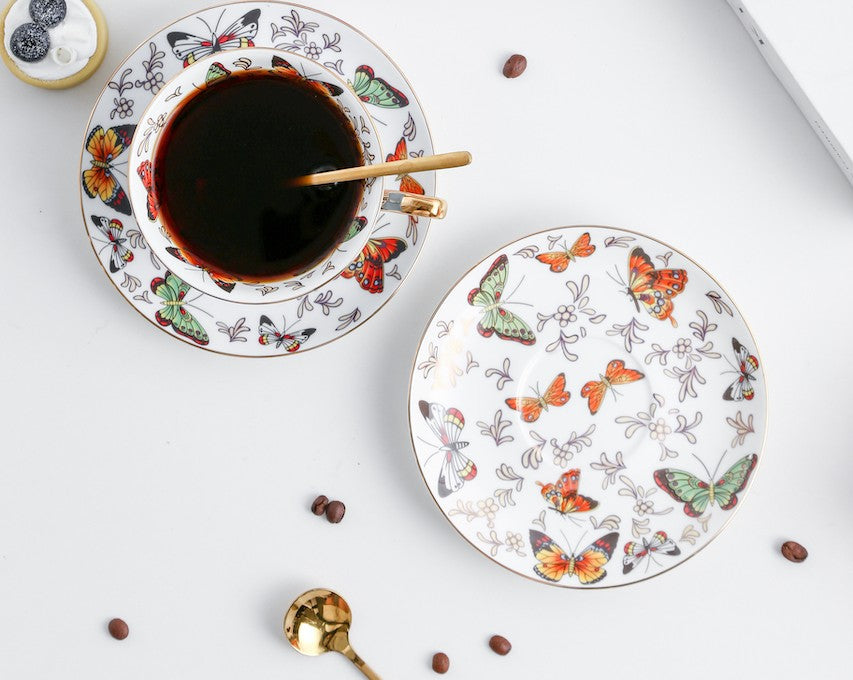Unique Butterfly Coffee Cups and Saucers, Creative Butterfly Ceramic Coffee Cups, Beautiful British Tea Cups, Creative Bone China Porcelain Tea Cup Set