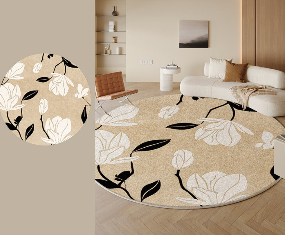 Modern Round Rugs under Coffee Table, Circular Rugs for Dining Table, Abstract Contemporary Rugs for Bedroom, Modern Cream Color Rugs for Living Room-artworkcanvas