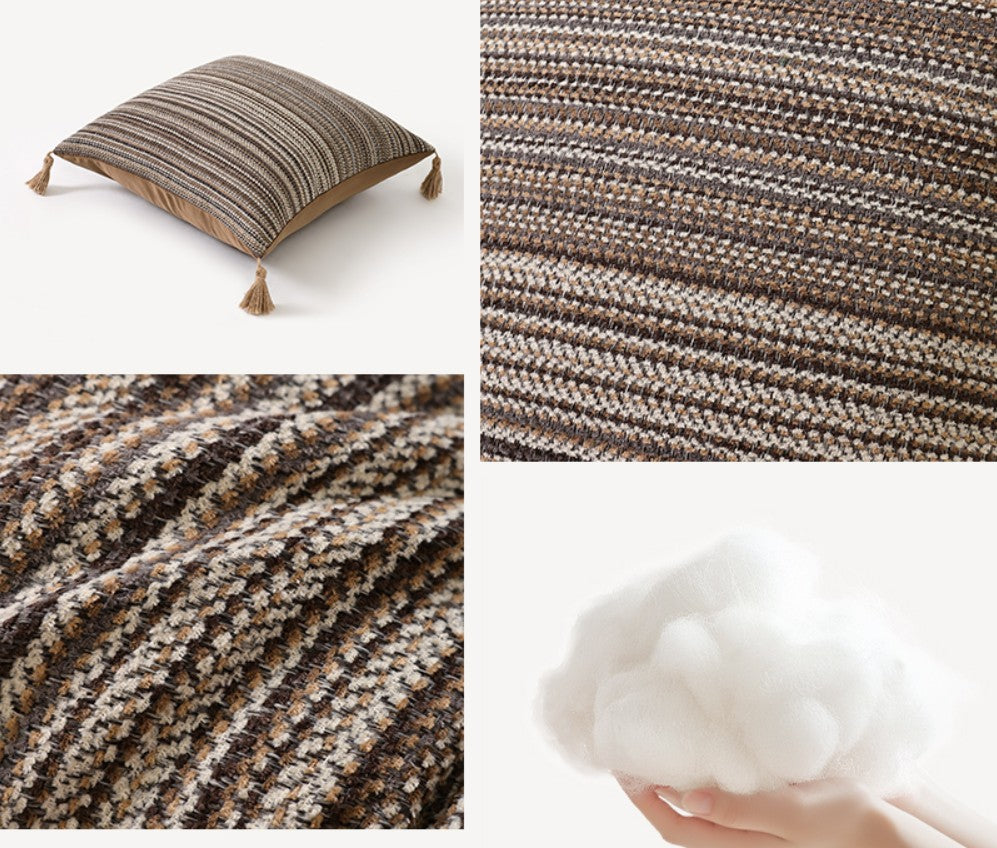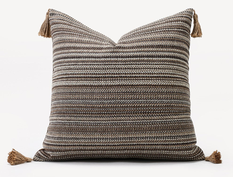 All pillow covers are sewn professionally, over-locked with finished edges to prevent fraying and has invisible zipper enclosures. This provides long lasting, durable covers that will stay straight and beautiful over time, which makes for a clean professional look.