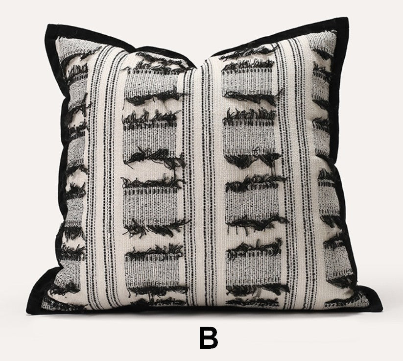 All pillow covers are sewn professionally, over-locked with finished edges to prevent fraying and has invisible zipper enclosures. This provides long lasting, durable covers that will stay straight and beautiful over time, which makes for a clean professional look.