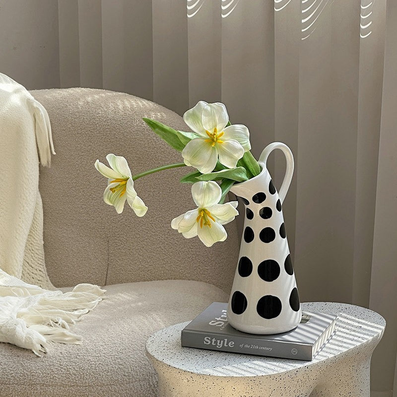 Ceramic Bud Vases, Small Flower Vases on Table, Black and White Polka Dot Flower Vase, Modern Porcelain Flower Vases, Handmade Water Holding Flower Vases-artworkcanvas