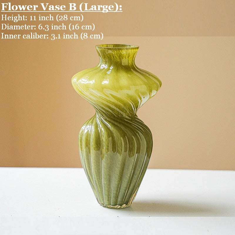 Unique Decorative Glass Vase, Centerpiece Vases on Table, Handmade Contemporary Glass Vases, Modern Green Vases for Living Room, Mid Century Vases for Flowers