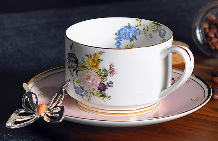 Beautiful Flower British Tea Cups, Creative Bone China Porcelain Tea Cup Set, Elegant Flower Ceramic Cups, Unique Royal Coffee Cup and Saucer-artworkcanvas