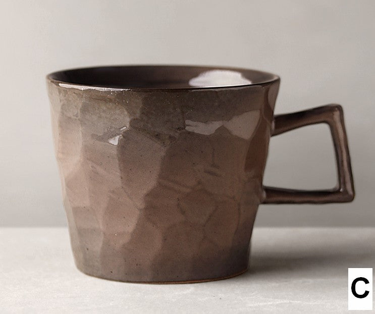 Modern Handmade Pottery Coffee Cup, Creative Brown White Black Blue Ceramic Coffee Mugs, Large Unique Tea Cup, Large Capacity Coffee Cups-artworkcanvas