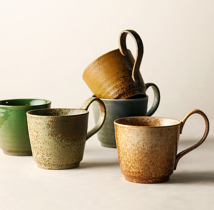 Modern Handmade Pottery Coffee Cup, Creative Brown Green Blue Ceramic Coffee Mugs, Large Unique Tea Cup, Large Capacity Coffee Cups