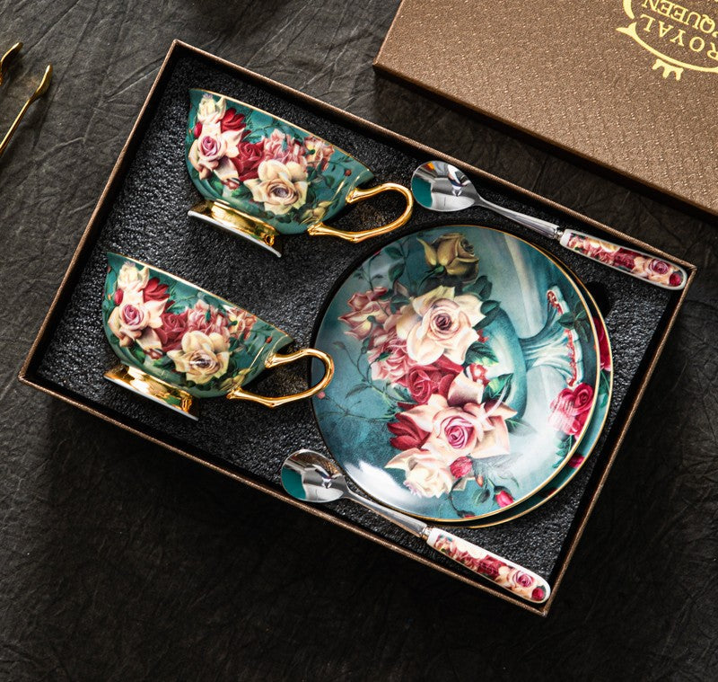 Rose Royal Ceramic Cups, Elegant Flower Ceramic Coffee Cups, Afternoon Bone China Porcelain Tea Cup Set, Unique Tea Cups and Saucers in Gift Box-artworkcanvas