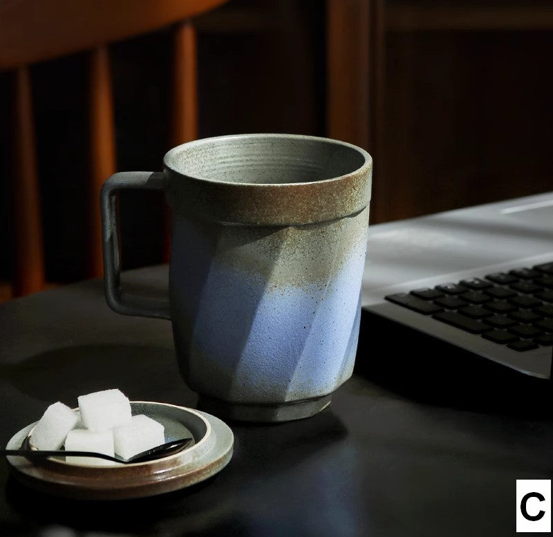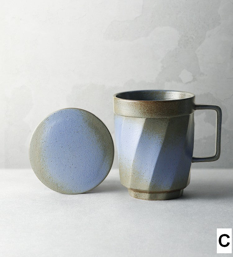 Creative Brown Green Blue Black Ceramic Coffee Mugs, Large Modern Handmade Pottery Coffee Cup, Large Unique Tea Cup, Large Capacity Coffee Mug with Cover-artworkcanvas