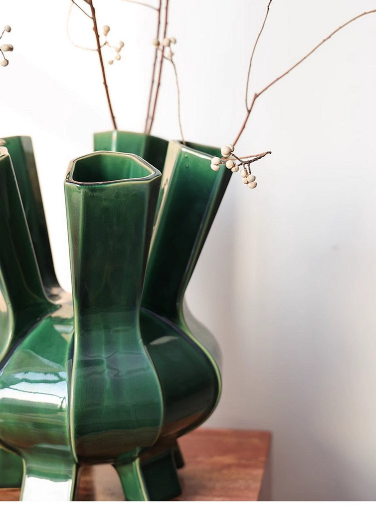 Unique Handmade Modern Flower Vase, Centerpiece Ceramic Bouquet Vases, Contemporary Vases on Dining Table, Green Porcelain Vases for Modern Home Decor