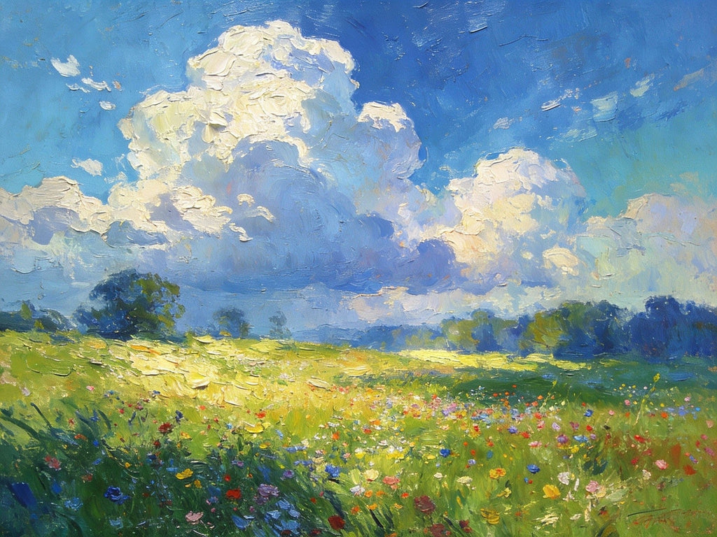 Valley in Bloom, Sunlight, Clouds, and Colorful Flora, Small Oil Paintings on Canvas, Hand Painted Canvas Art, Heavy Texture Oil Paintings, Original Artwork Small Paintings, Small Wall Paintings