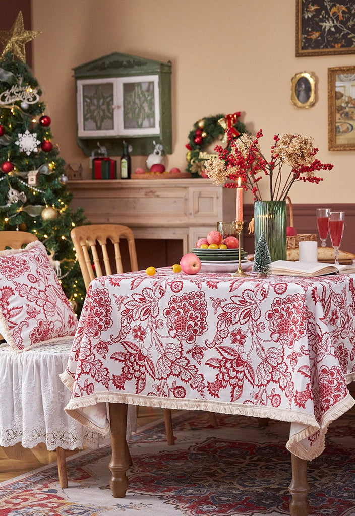 Flower Pattern Tablecloth for Holiday Decoration, Square Tablecloth for Round Table, Large Cotton Rectangle Tablecloth for Home Decoration, Farmhouse Table Cloth Dining Room Table