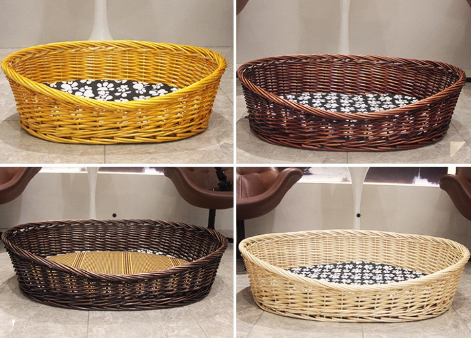 Hand woven Rattan Cat Beds, Extra Large Natural Wicker Dog Bed with Washable Cushion for Indoor Cats and Dogs