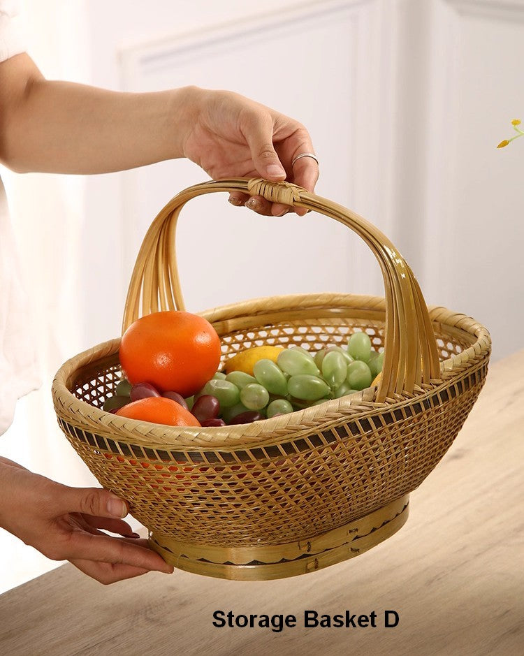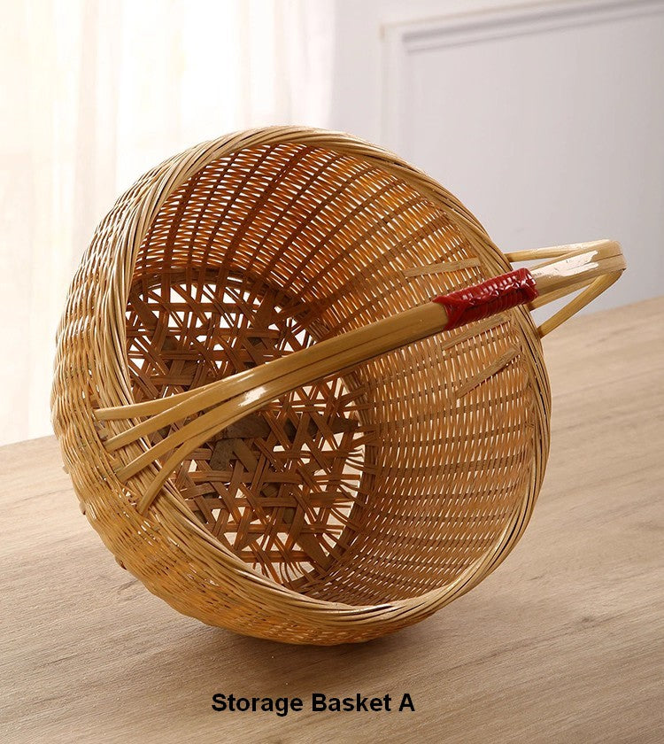 Lovely Bamboo Baskets for Vegetable, Extra Large Picnic Food Basket with Handle, Natural Hand-woven Bamboo Basket, Natural Fruit Basket, Kitchen Storage Baskets