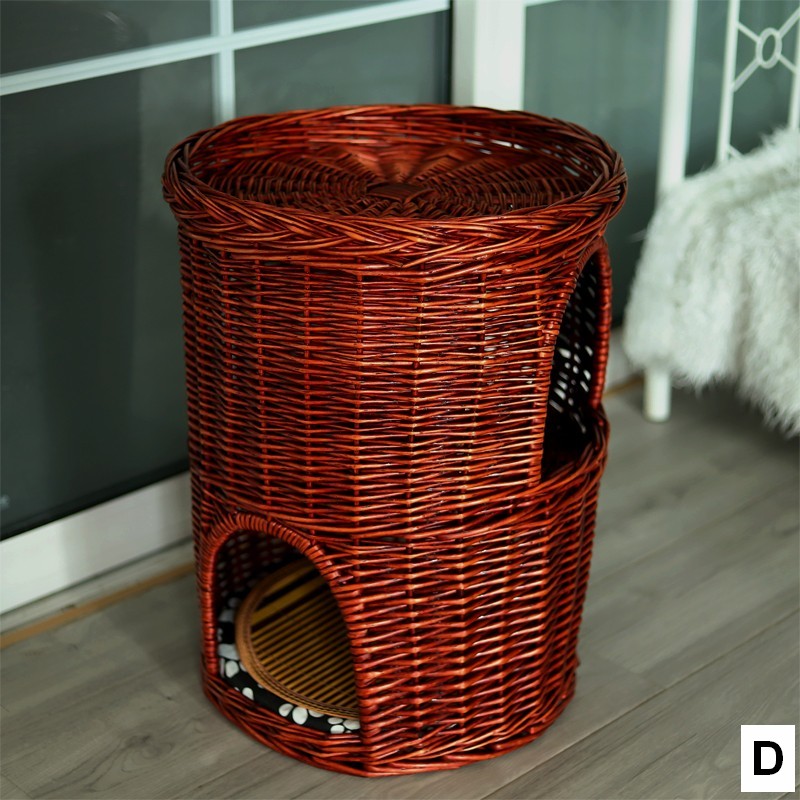 Large Cat House Basket with Washable Cushion for Indoor Cats and Dogs, Triple-Layer Cat Bed