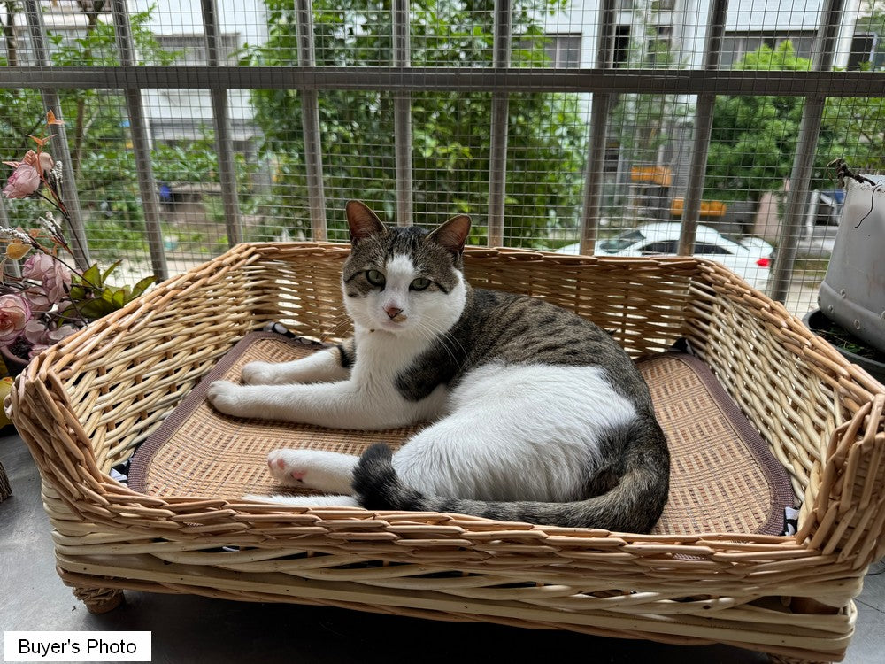 Wicker Cat House Basket with Washable Cushion for Indoor Cats and Dogs, Rattan Cat Bed