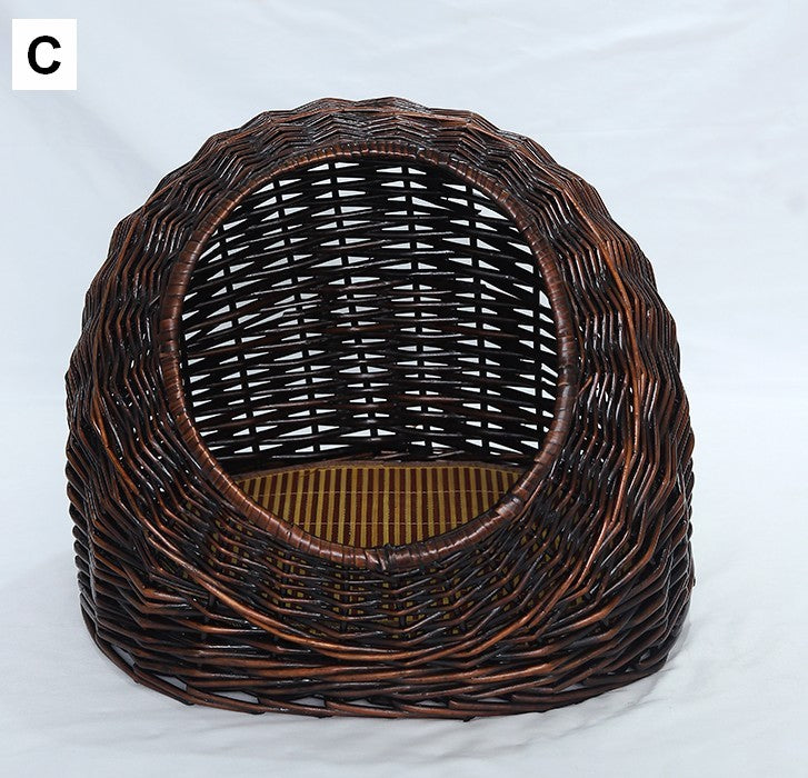 Wicker Cat House Basket with Washable Cushion for Indoor Cats and Dogs, Rattan Cat Bed