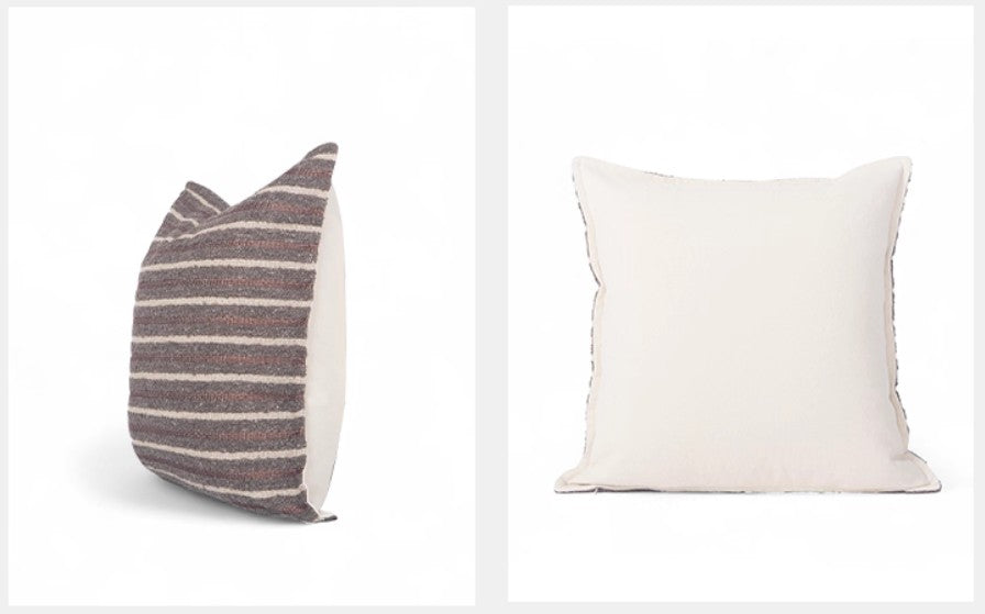 All pillow covers are sewn professionally, over-locked with finished edges to prevent fraying and has invisible zipper enclosures. This provides long lasting, durable covers that will stay straight and beautiful over time, which makes for a clean professional look.