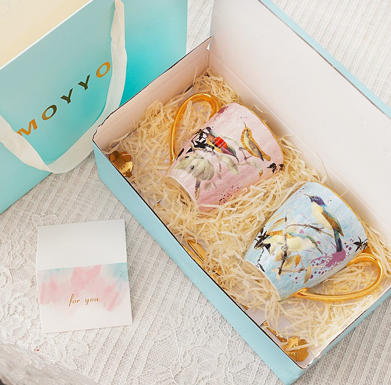 Elegant Ceramic Coffee Mug, Beautiful Bird Flower Ceramic Mug, Large Creative Bone China Porcelain Mug, Large Capacity Ceramic Mugs for Office