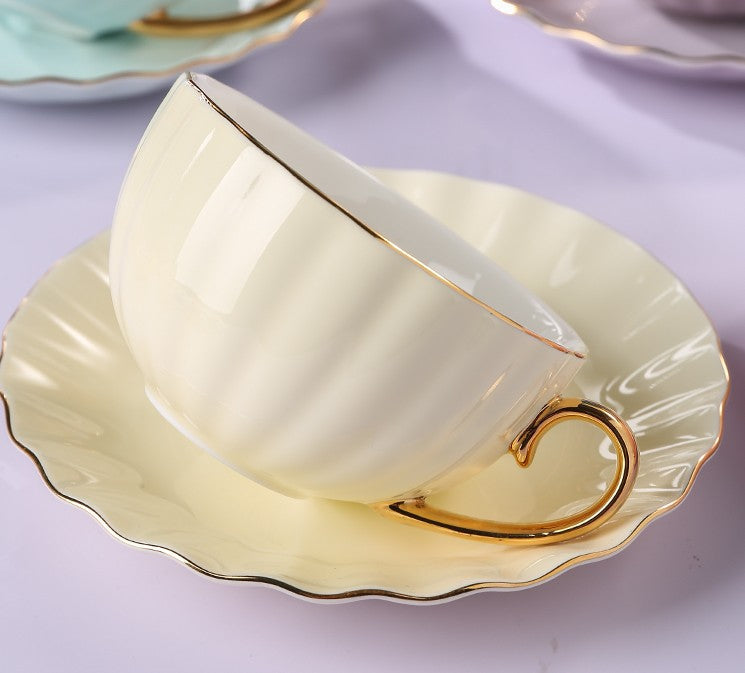Elegant Macaroon Ceramic Coffee Cups, Beautiful British Tea Cups, Creative Porcelain Tea Cup Saucer Set of 2 Cups, 6.8 oz Tea Cup and Saucer in Gift Box as Birthday Gift