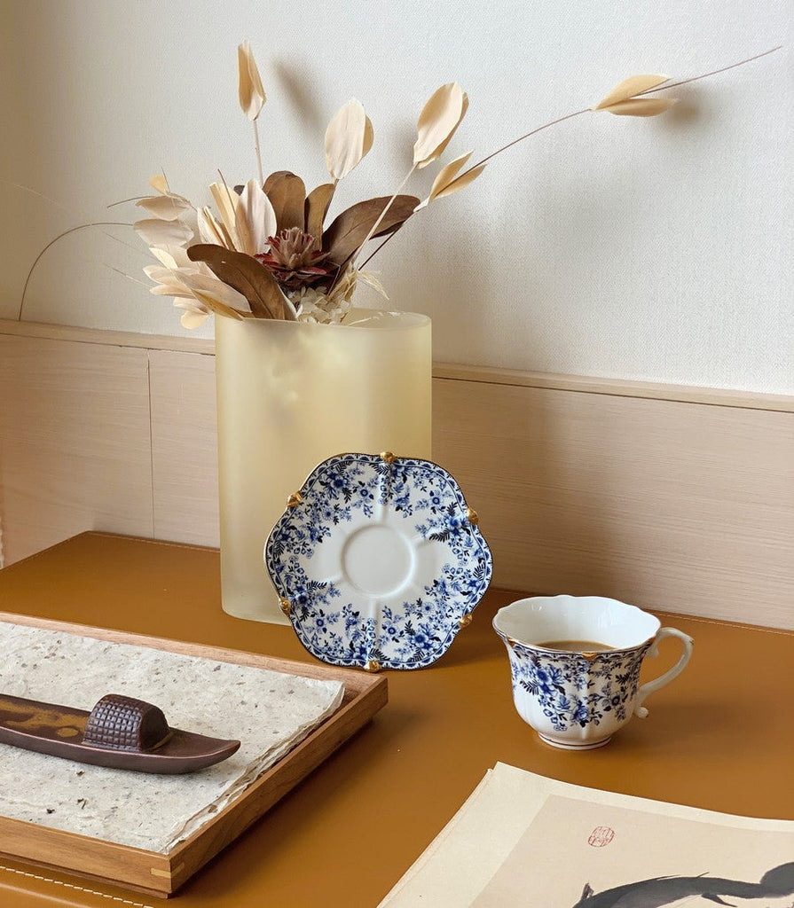 French Style China Porcelain Tea Cup Saucer Set, 7.8 oz Tea Cup and Saucers, Royal Ceramic Cups, Elegant Vintage Ceramic Coffee Cups for Traditional Afternoon Tea